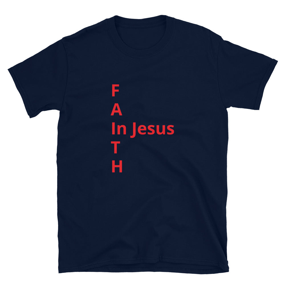 "Faith In Jesus" T-shirt. You've now found the staple t-shirt of your wardrobe. It's made of a thicker, heavier cotton, but it's still soft and comfy. And the double stitching on the neckline and sleeves add more durability to what is sure to be a favorite!